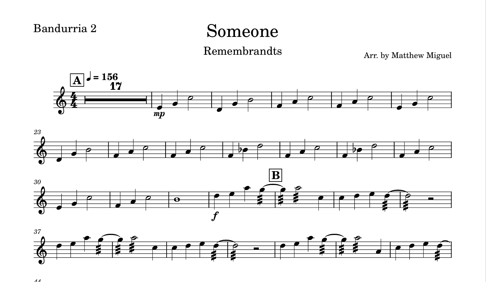Someone is a timeless ballad expertly arranged for rondalla ensemble by Matthew Miguel. This arrangement captures the emotional depth of the original composition while showcasing the unique tonal qualities of traditional Filipino string instruments. Perfect for musicians seeking to expand their rondalla repertoire with contemporary material, this sheet music provides clear notation and thoughtful voicing that balances accessibility with musical sophistication. Ideal for both performance and study.