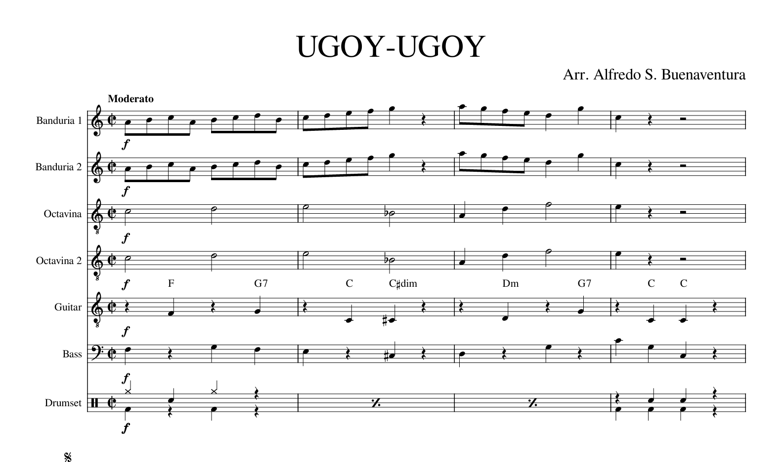 Ugoy-Ugoy is a beloved Filipino lullaby, masterfully arranged for rondalla ensemble by the renowned composer Alfredo S. Buenaventura. This arrangement captures the gentle, soothing character of the traditional melody while showcasing the rich harmonic possibilities of the rondalla instrumentation. Perfect for concert performances, cultural events, or intimate gatherings, this score brings authentic Filipino musical heritage to life with sophisticated orchestration that honors both the composition's origins and the ensemble's capabilities.